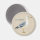This coastal inspired round magnet features a beautiful watercolor seagull in soft shades of blue and grey on a background of sand beige. Personalize with your choice of name or special text. Great for gift tags and party favor bags.