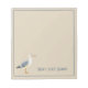 This coastal inspired notepad features a beautiful watercolor seagull in soft shades of blue and grey on a background of sand beige. Personalize with your choice of name or special text. Great for gift bags and party favor bags.