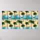 Watercolor beach seamless texture. Palms, seagull, Poster