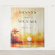 This modern watercolor tropical beach sunset wedding photo booth backdrop can be personalised with your information in modern typography. Designed by Thisisnotme©