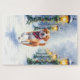 Watercolor Beagle Snowy Park Christmas Holiday Jigsaw Puzzle