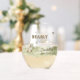 Add a touch of rustic elegance to your celebration with this 'Watercolor Bearly Wait' stemless wine glass. The design features a charming bear cub looking up at a delicate butterfly, surrounded by forest friends like a fawn and an owl. With its soft sage green tones and whimsical "we can BEARLY WAIT" typography, this glass is perfect for a woodland-themed baby shower or a nature-inspired gender-neutral party. These stylish, stemless glasses offer a modern look and can be easily personalized with the honoree's name and a special message, making them a beautiful keepsake for your guests. Complete the look! Visit the full 'Watercolor Bearly Wait' collection for matching invitations, welcome signs, and party decor to create a perfectly coordinated forest theme. ©Susanne Sachers - Sunny Mind 🌞