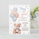 Experience the charm of a watercolor soft pastel colour baby shower theme with vintage-inspired teddy bears 🐻 holding balloons 🎈. Our simple yet cute design gender reveal invitation captures the essence of a gender-neutral celebration. Perfect for welcoming the little one with timeless elegance. Customise easily for a touch of personal flair. Let's make your gender reveal unforgettable.