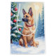 Share festive holiday cheer with this beautiful Christmas card featuring an attentive Belgian Malinois beside a decorated evergreen tree. Painted in a soft watercolor style with gentle snow and warm winter lighting, this design adds seasonal charm perfect for dog lovers. The blank interior allows you to add a personal greeting, making it ideal for gifting, holiday mail, and breed-themed stationery collections.