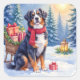 Watercolor Bernese Mountain Dog Sleigh Christmas Square Sticker