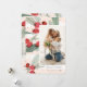Spread holiday cheer with this festive holiday card featuring your favourite photos surrounded by watercolor berries, green leaves, soft pink and white stripes and faux gold glitter polka dots. Change the greeting from happy holidays to Merry Christmas, Happy New Year, etc. The backside features two photos. A really fun, unique card that will be sure to spread holiday joy!