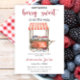 Baby shower invitation card featuring watercolor illustration of cart with berries. The text says "Someone Berry sweet is on the way."