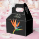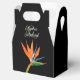 Black gable favour boxes feature exotic bird of paradise watercolor flowers on the front and back with your names on the top and a personal thank you message on the back. MATCHING invitations, plates, napkins and other items in our store.