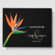 Elegant tropical bird of paradise flower on a black background accents this wedding guest book with your details in chic lettering on the front and the spine. MATCHING items in our store.