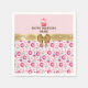 Celebrate a special birthday with these charming paper napkins featuring a delightful pattern of watercolor doughnuts, cupcakes, and macarons on a soft pink background. A glittery gold band and a festive gold bow accent a "Happy Birthday [NAME]" message with a sweet cupcake illustration. These napkins are perfect for adding a touch of sweetness to any birthday celebration.