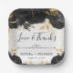 Watercolor Black and Gold Flowers Wedding Paper Plate