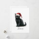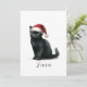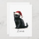 Watercolor Black Cat in Festive Santa Hat Card