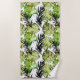 Watercolor Black Green Tropical Leaves Pattern Beach Towel