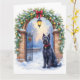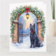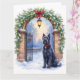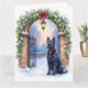 Send elegant seasonal greetings with this festive Christmas card featuring a Black Russian Terrier beside a beautifully decorated iron gate. Rendered in soft watercolor tones with gentle snowfall and warm lantern light, this design creates a refined holiday mood perfect for dog lovers. The blank interior allows space for a personalized message, making it ideal for thoughtful gifting, holiday correspondence, and breed-inspired stationery collections.