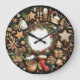 Watercolor Black Rustic Christmas Motifs Holiday Large Clock