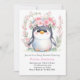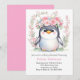 Watercolor Blissful Cute Penguin Girl Baby Shower Invitation