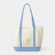 Love the durable cream colored canvas and navy blue contrasted handles. Perfect for carrying my laptop and papers.