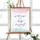 This watercolor blue and pink gender reveal welcome poster is perfect for a baby reveal party. The luxurious design features a light pink watercolor texture and light blue watercolor texture with a splash of faux gold glitter dust and an elegant calligraphy script font.