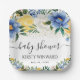 Watercolor Blue and Yellow Flowers Baby Shower Paper Plate