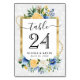 Watercolor Blue and Yellow Flowers Wedding Table Number