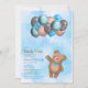 Watercolor Blue Brown Balloons Bear Baby Shower Invitation