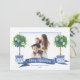Watercolor Blue Chinoiserie Christmas Tree Photo Holiday Card