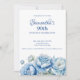 Watercolor Blue Floral 90th Birthday Party Invitation