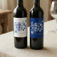 Watercolor Blue Floral Bouquet Wedding Wine Label