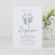 watercolor blue floral cross baptism invitation