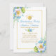 Watercolor Blue Floral and Gold Graduation Party Invitation Card - Blue and Gold Text - Blue back