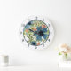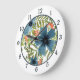 Watercolor Blue Flower with Pink Berries Large Clock
