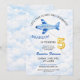 Watercolor Blue & Gold Airplane 5th Birthday Invitation