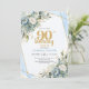 Watercolor Blue Gold Glow 90th Birthday Invitation