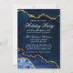 Watercolor Blue Gold Marble Geode Holiday Party Invitation