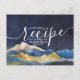 Watercolor Blue Gold Mountain Bridal Shower Recipe Invitation Postcard