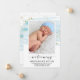This watercolor blue and gold photo birth announcement is perfect for an elegant baby boy announcement. The luxurious design features a light blue watercolor texture with a splash of beautiful faux gold glitter and a modern calligraphy script font. Personalise the card with a photo of your baby, the baby's full name, birth stats and your names.