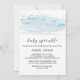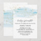 This watercolor blue & gold sparkle baby sprinkle invitation card is perfect for an elegant baby boy shower. The luxurious design features a light blue watercolor texture with a splash of beautiful faux gold glitter and a modern calligraphy script font.