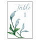 Watercolor Blue Green Leaves Wedding Reception Table Number