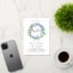 Invite guests to your event with this customisable gold foil baptism invitation. It features a watercolour floral wreath of blue and purple hydrangeas and roses. Personalise by adding your details. This blue hydrangea baptism invitation is perfect for spring and winter events. Matching items are available.