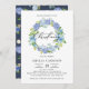 Watercolor Blue Hydrangea Wreath Christening Invitation
