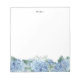 A floral, whimsical and elegant notepad featuring blue and purple watercolor hydrangeas, peonies, anemones, and foliage. This notepad will be a perfect feminine accent for your office.