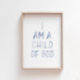 The "Watercolor Blue 'I Am a Child of God' Print" is a serene and inspiring decorative piece that is perfect for nursery rooms or kids' rooms. This art print features a watercolor design in shades of blue, creating a calming and peaceful aesthetic. The print showcases the phrase "I Am a Child of God," adding a touch of spirituality and positivity to the space. The blue colour palette evokes a sense of tranquillity and serenity, making it ideal for creating a soothing environment for children. This art print can be easily framed and hung on the wall as a focal point or combined with other wall decor. It serves as a beautiful reminder of faith and identity in a child's room.