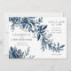 Interesting, modern and elegant wedding invitation featuring blue indigo flowers and leaves in watercolor. Loosely painted florals with outlines. A unique card with a horizontal design.