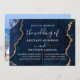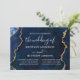 Modern Elegant Watercolor Blue and Gold Marble Agate Geode Wedding Invitation. Trendy Calligraphy Script. Couple Photo Back.