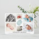 Watercolor Blue Monogram Photo Collage Boy Birth Announcement