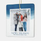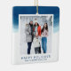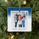 This modern watercolor wave photo holiday ornament features a watercolor background at the top half.
