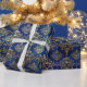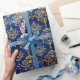 Watercolor Blue Pattern with Gold Damask Wrapping Paper