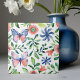 Watercolor Blue Pink Green Butterflies and Florals Tile