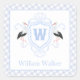 Watercolor Blue Stork Gingham Monogram Crest Square Sticker