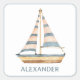 These cute stickers feature a beautiful watercolor sailboat with blue and cream stripes. Personalise with your choice of name or special text.